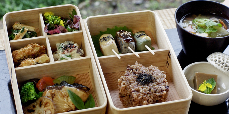 曲げわっぱランチのごはんは酵素玄米を使います。